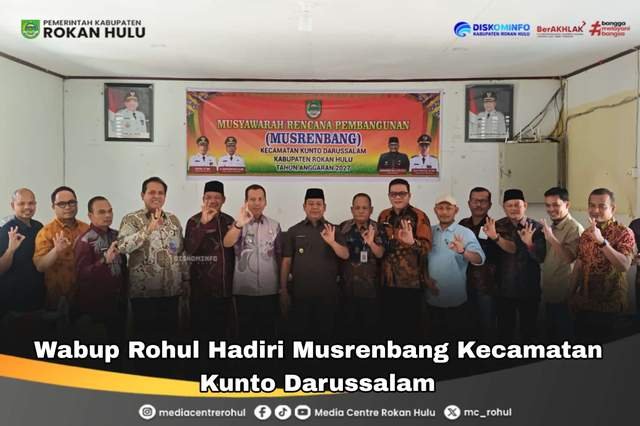 ROKAN HULU – Wakil Bupati Rokan Hulu (Rohul) H. Syafaruddin Poti, S.H, M.M hadiri Musyawarah Rencana Pembangunan (Musrenbang) Kecamatan Kunto Darussalam, Aula Kantor Camat pada Kamis (05/02/2026).