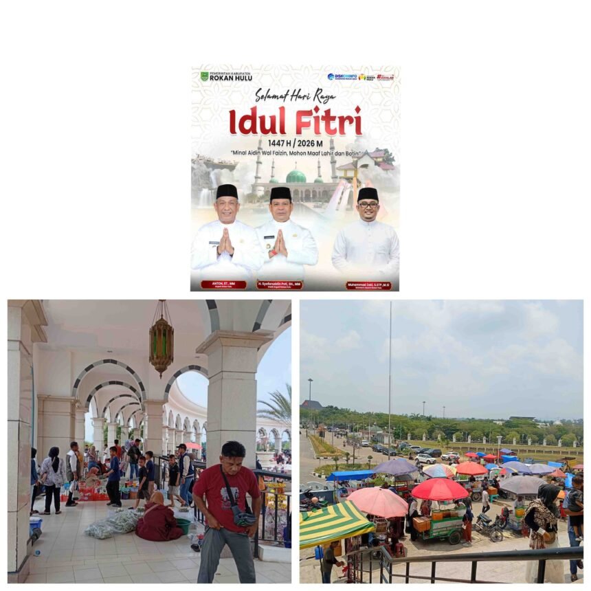 Mulai padat Pengunjung Masjid Agung Islamic Center Rohul di hari kedua lebaran Idhul fitri, membuat dampak positif bagi pengusaha UMKM, dan pengunjung pun mendapat kemudahan dalam membeli produk UMKM . (IR)